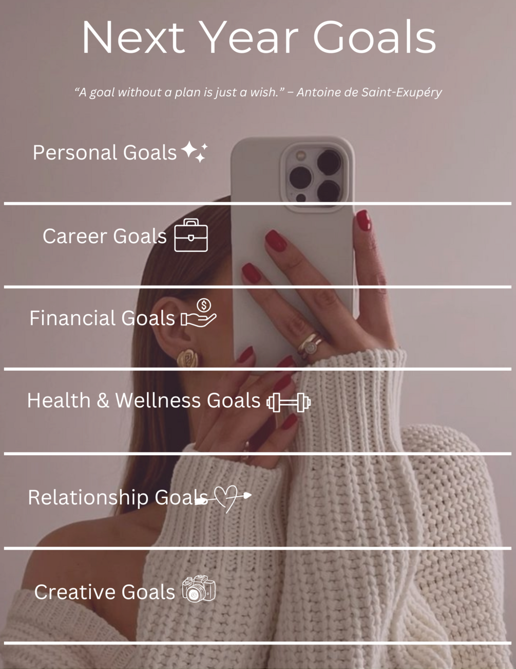 - Next Year Goals page to plan ahead for personal, career, financial, and creative growth